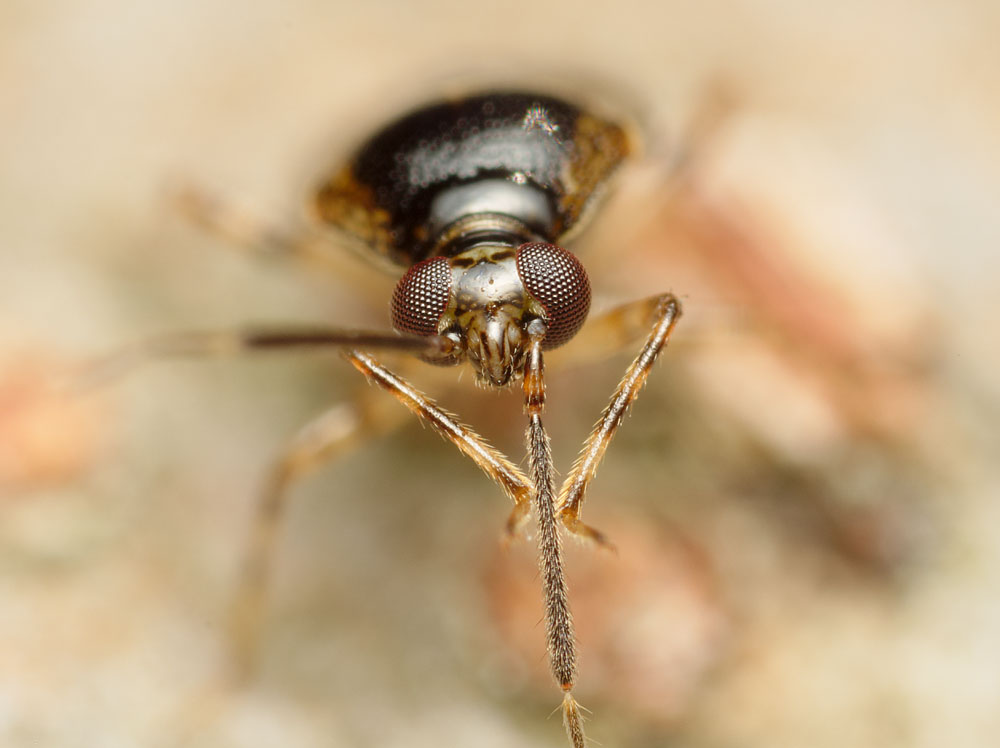 キリの落ち葉の上を歩くマルトビムシの一種です。よく似たマルトビムシは何度も出していますが、体長は0.9mmほどあって、その仲間では大きいほうでしょう。